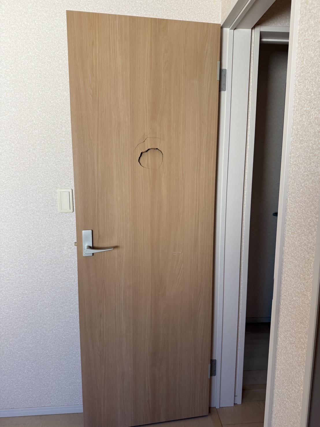 元々は扉の交換を希望されておりましたが、リペアをご提案して、そちらで進める事になったお話しなのですが、火災保険の「破損・汚損」をご契約されているお客様で、免責分の1万数千円くらいのお支払いだったとの事です。