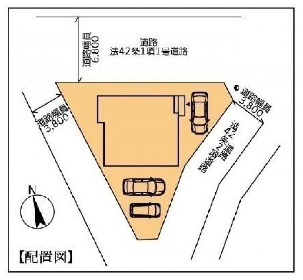 | 接道状況 | 北側 公道 6.8m・西側 私道 3.8m・東側 公道 3.8m |